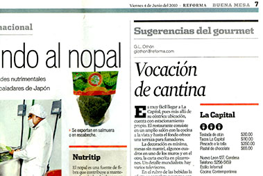 Situado en la colonia La Condesa, La Capital, insignia del chef Óscar Sánchez, es un local con un ambiente relajado, ideal para cada ocasión, una comida con los amigos o una cena romántica con la novia.